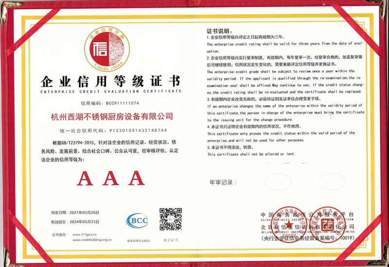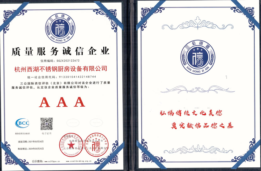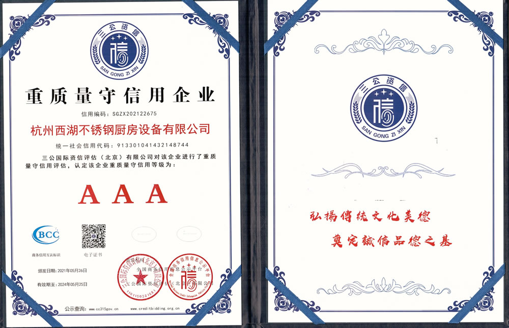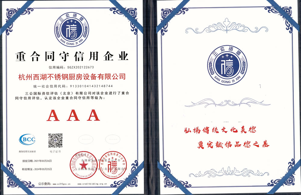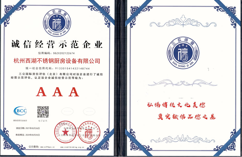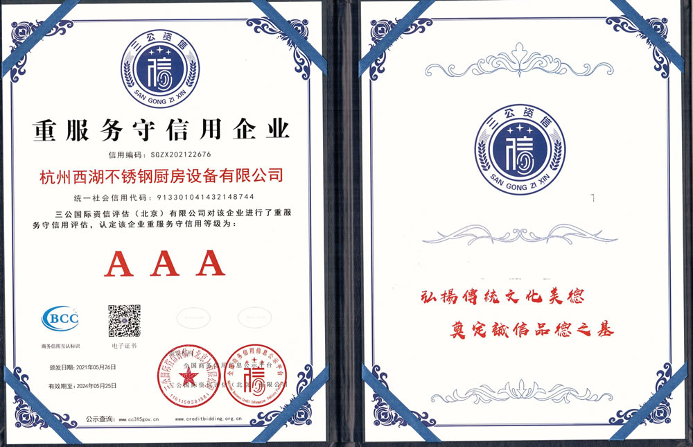 杭州西湖不銹鋼廚房設(shè)備有限公司成立20年以來(lái),通過(guò)一系列創(chuàng)造性的工作,凝聚企業(yè)力量,發(fā)揮自身優(yōu)勢(shì),助推企業(yè)發(fā)展和品牌建設(shè),取得了一些榮譽(yù),這是廣大西湖廚房設(shè)備員工共同努力和各位新老客戶(hù)共同支持的結(jié)果,我們將再接再厲創(chuàng)造更多的輝煌!