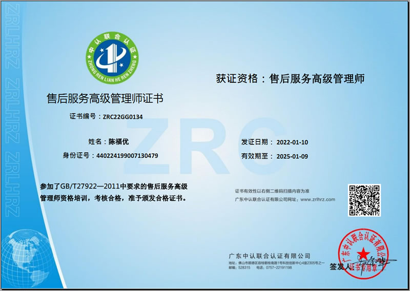 售后服務(wù)高級(jí)管理師證書(shū)-陳福優(yōu)