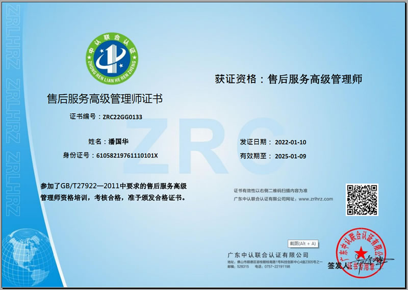 售后服務(wù)高級(jí)管理師證書(shū)