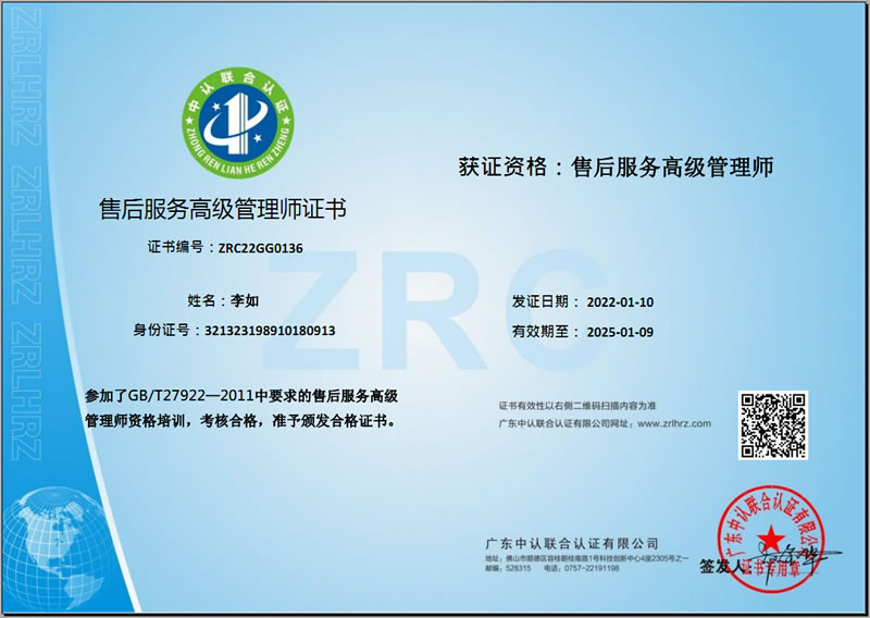 售后服務(wù)高級(jí)管理師證書(shū)-李如