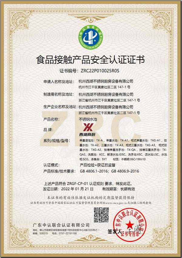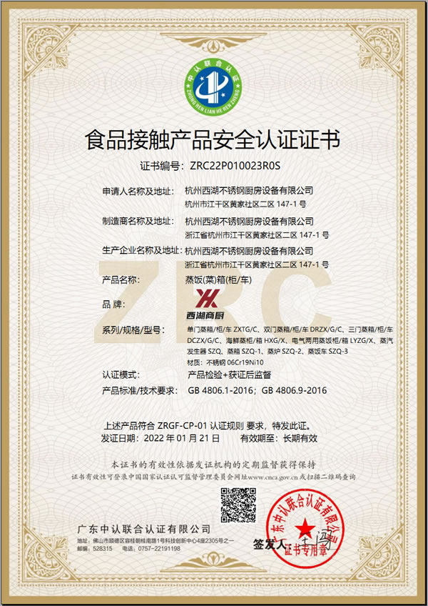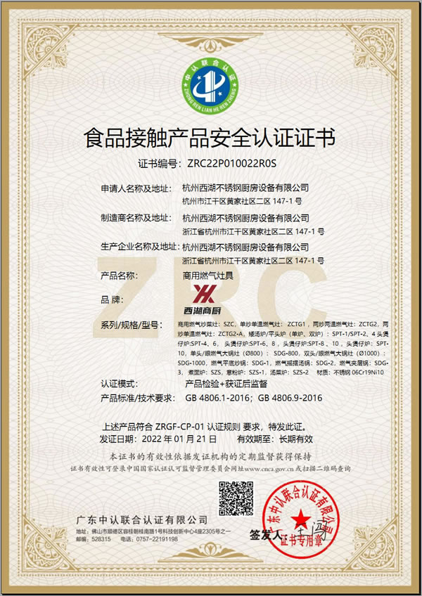 食品接觸產(chǎn)品安全認(rèn)證證書(shū)
