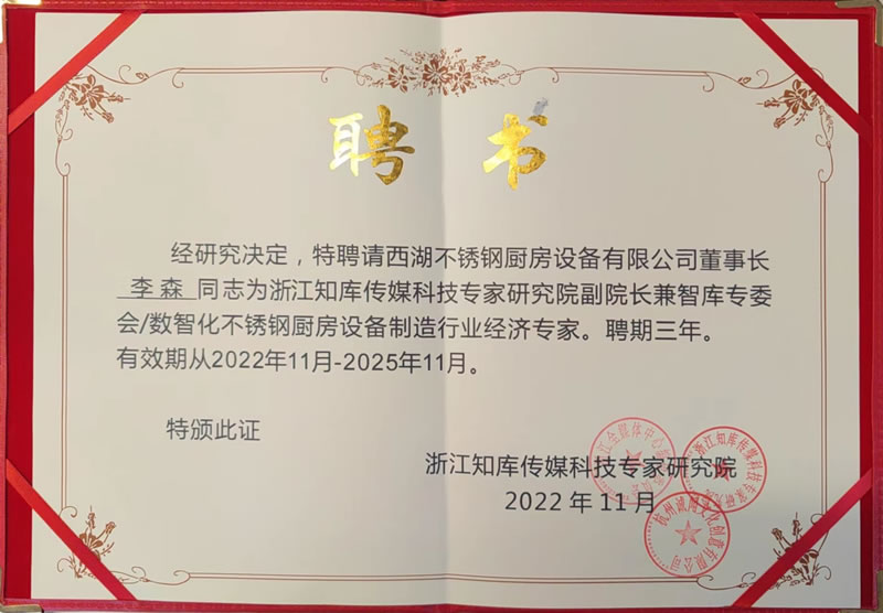 公司董事長(zhǎng)李森專(zhuān)家聘書(shū)